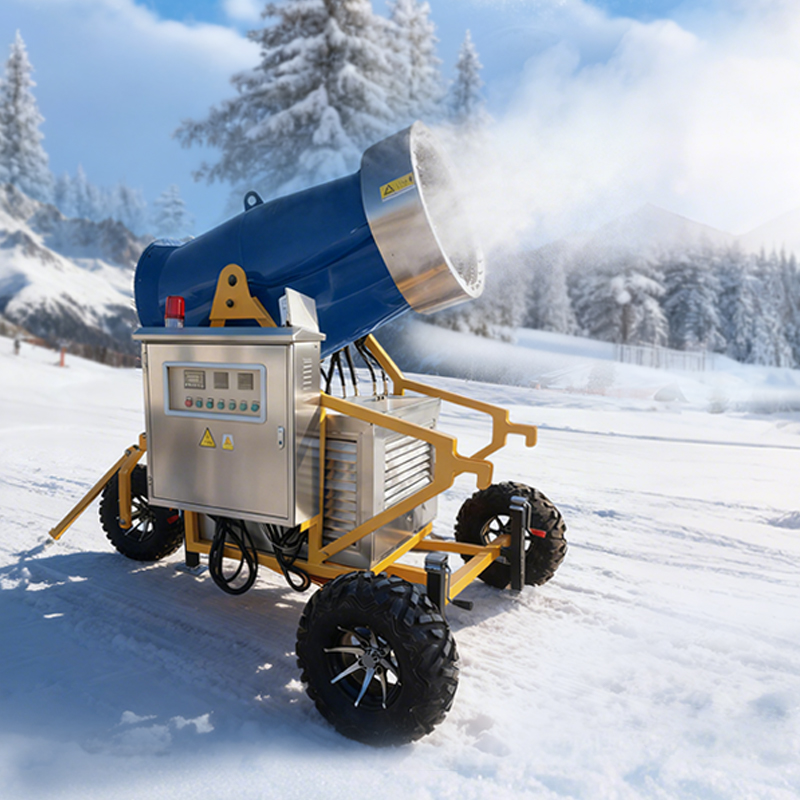 Snowmaking machine is indispensable for ski resorts, as it offers a secure and effective alternative to natural snowfall. Snow guns—also referred to as snow cannons, snow makers, or snow machines—function by forcing precise ratios of air and water into the atmosphere, converting the water into snowflakes. These guns are the primary instruments in snowmaking operations. They utilize compressed air to propel water droplets at high velocities into the air; once airborne, the droplets freeze and descend to the ground as snow. This method, known as aerodynamic transformation, is the go-to technique for artificial snow production when natural snow is scarce.